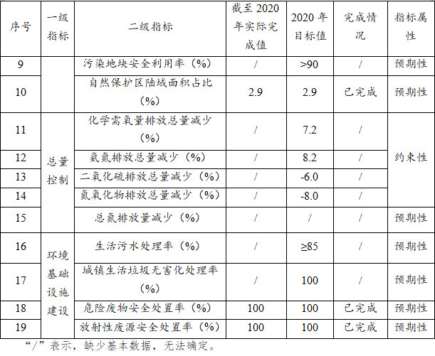 “十三五”期間,在市委、市政府的正確領導下,在陽江市生態(tài)環(huán)境局的大力支持下,全市生態(tài)環(huán)境質(zhì)量持續(xù)改善,較好地完成了“十三五”規(guī)劃既定的環(huán)保目標。陽春市“十三五”環(huán)保目標達成情況如表1所示。