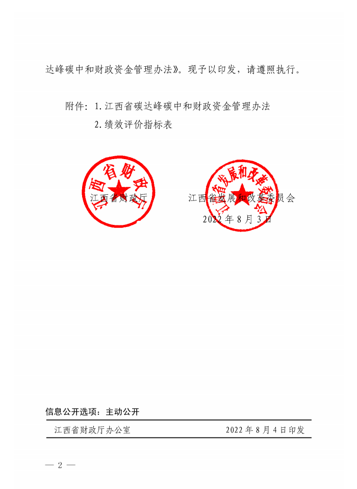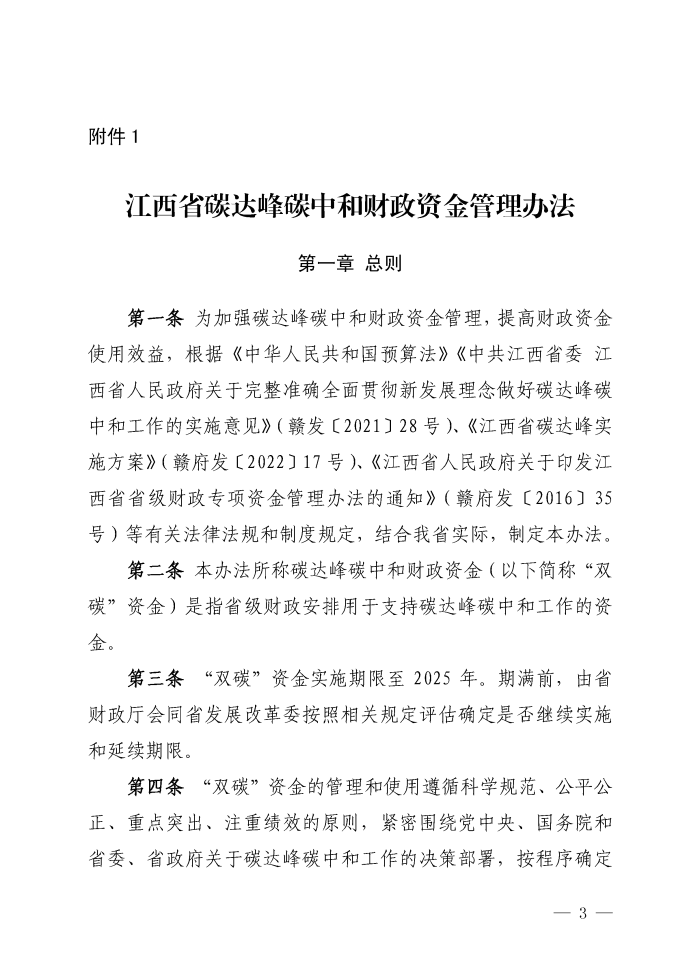 江西省財(cái)政廳 發(fā)改委印發(fā)《江西省碳達(dá)峰碳中和財(cái)政資金管理辦法》