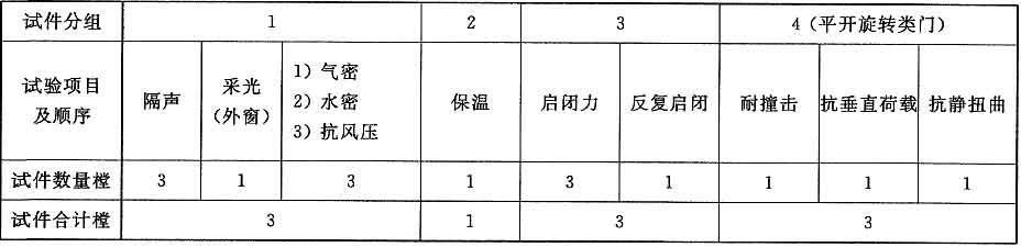 門窗性能檢驗(yàn)試件分組、數(shù)量和試驗(yàn)順序見表16。