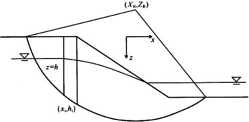 xi、hi——第i土條滑動(dòng)面上中點(diǎn)的水平、垂直坐標(biāo)值(m);