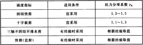 2 當(dāng)采用十字板剪切強(qiáng)度或三軸不固結(jié)不排水剪強(qiáng)度等總強(qiáng)度時(shí),式A.0.6-2和式A.0.6-3中相應(yīng)土體強(qiáng)度指標(biāo)應(yīng)采用十字板剪強(qiáng)度或其他總強(qiáng)度標(biāo)準(zhǔn)值,超靜孔隙水壓力標(biāo)準(zhǔn)值取零。