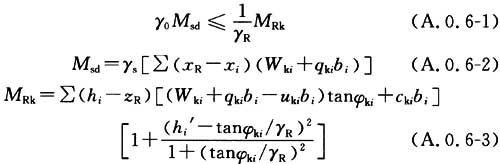 1 整體穩(wěn)定驗(yàn)算宜采用圓弧滑動(dòng)法(圖A.0.6),按下列公式計(jì)算: