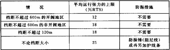 表5.0.11 鍍鋅鋼絞線(xiàn)或鋁包鋼絞線(xiàn)平均運(yùn)行張力的上限和防振措施
