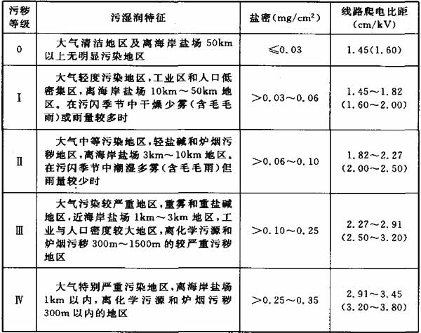 表A 高壓架空線(xiàn)路污穢分級(jí)標(biāo)準(zhǔn)
