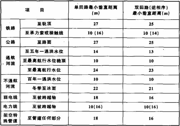 注:垂直距離中,括號(hào)內(nèi)的數(shù)值用于跨桿(塔)頂。