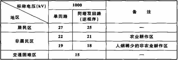 注:1 宜遠(yuǎn)離低壓用電線(xiàn)路和通信線(xiàn)路,在路徑受限制地區(qū),與低壓用電線(xiàn)路和通信線(xiàn)路的平行長(zhǎng)度不宜大于1500m,與邊導(dǎo)線(xiàn)的水平距離宜大于50m,必要時(shí),通信線(xiàn)路應(yīng)采取防護(hù)措施,受靜電或電磁感應(yīng)影響電壓可能異常升高的入戶(hù)低壓線(xiàn)路應(yīng)給予必要的處理;