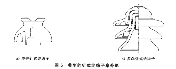 典型的針式絕緣子傘外形示于圖6。通常,針式絕緣子外形可以歸為防霧型,因此下而不再單獨(dú)涉及它。