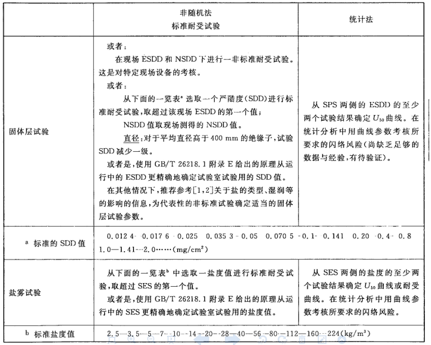 對(duì)絕緣子選擇和尺寸確定使用試驗(yàn)室試驗(yàn)的一般原理敘述在GB/T 26218.1。試驗(yàn)室試驗(yàn)用長(zhǎng)持續(xù)耐受電壓和要求的污穢度耐受水平來(lái)表示。