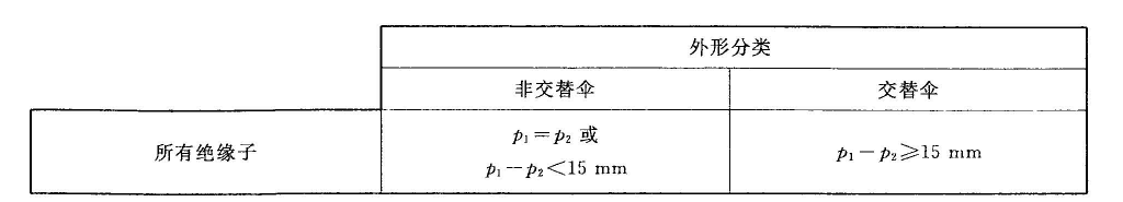 表2 假定每個(gè)元件或串有相同爬電距離的瓷和玻璃絕緣子外形相對(duì)于標(biāo)準(zhǔn)外形的適宜性