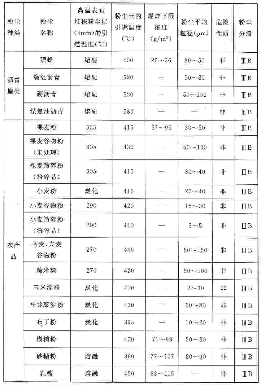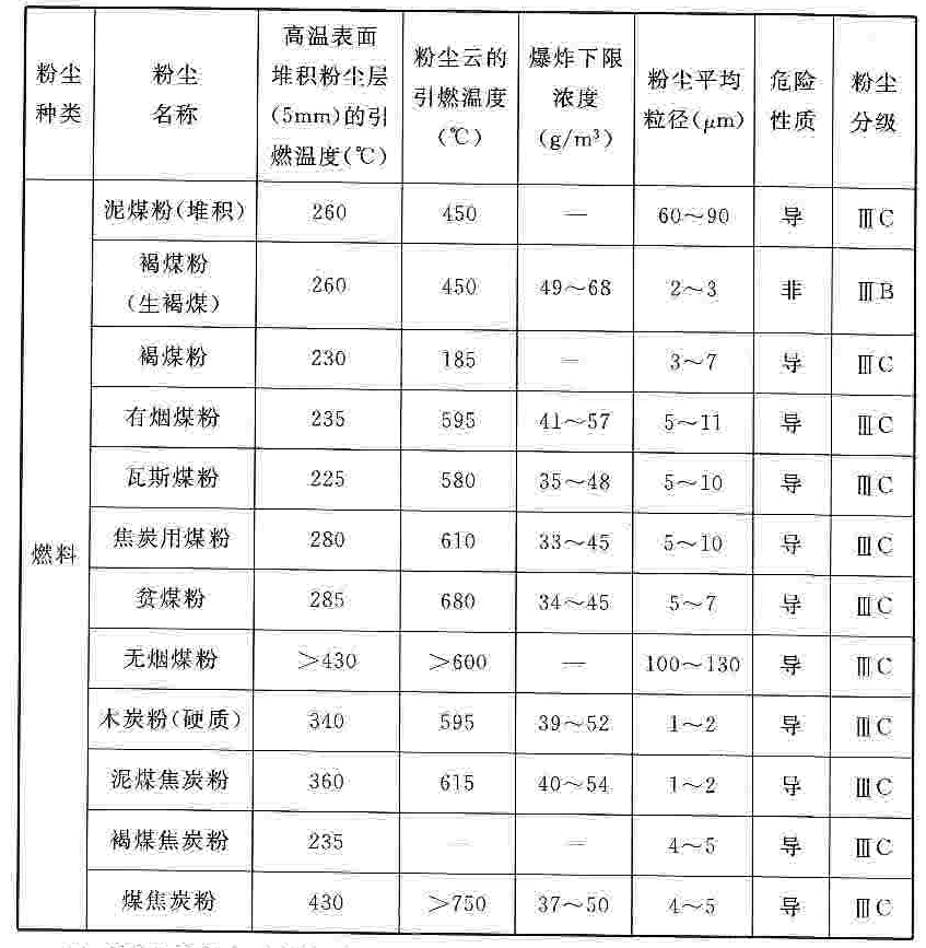 注:危險(xiǎn)性質(zhì)欄中,用“導(dǎo)”表示導(dǎo)電性粉塵,用“非”表示非導(dǎo)電性粉塵。