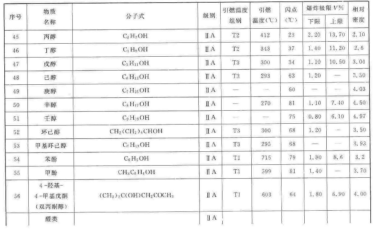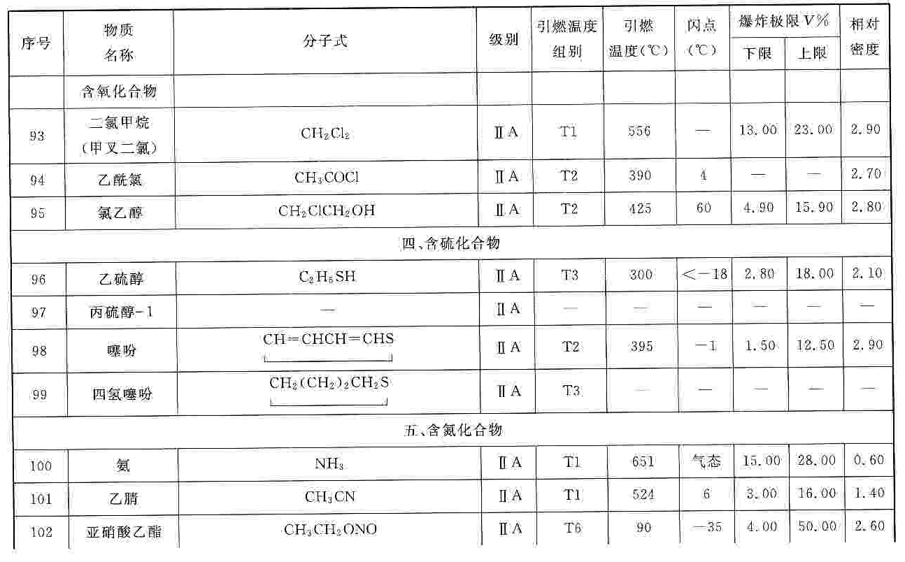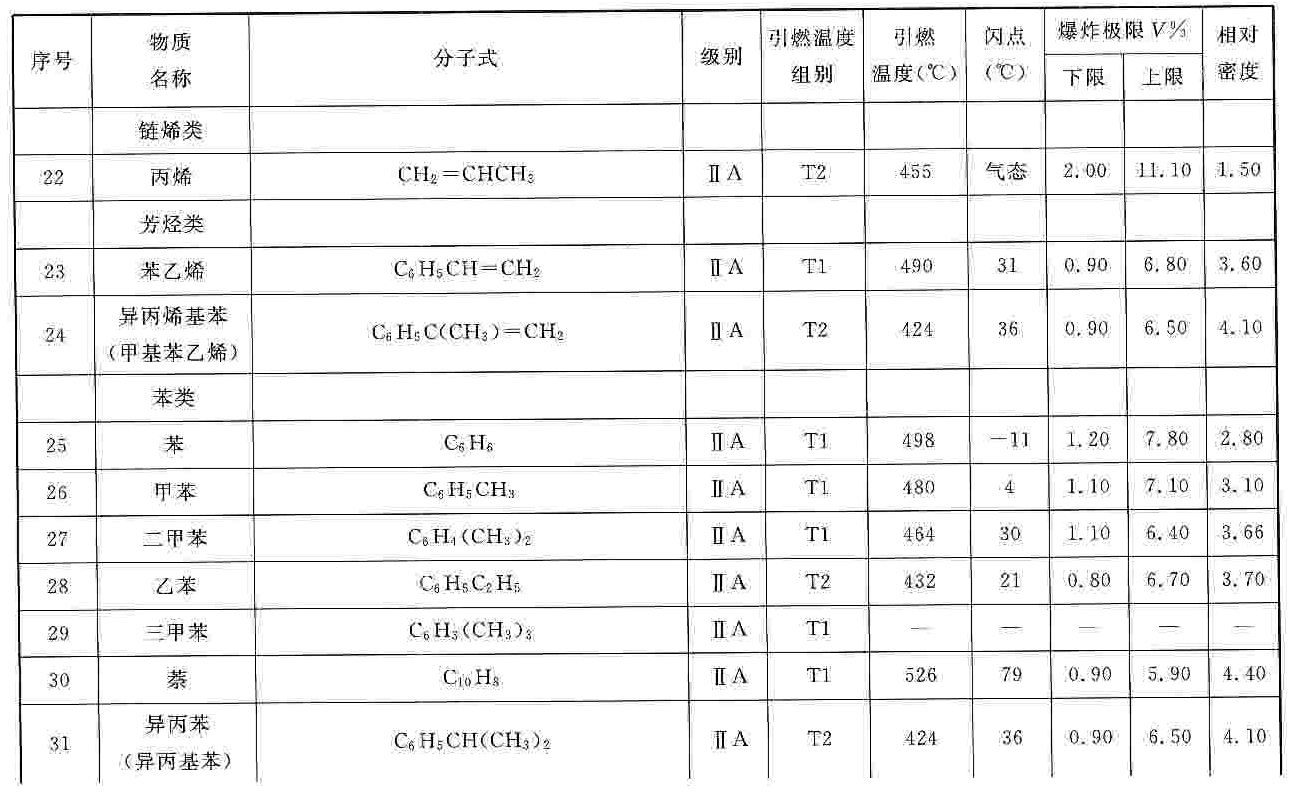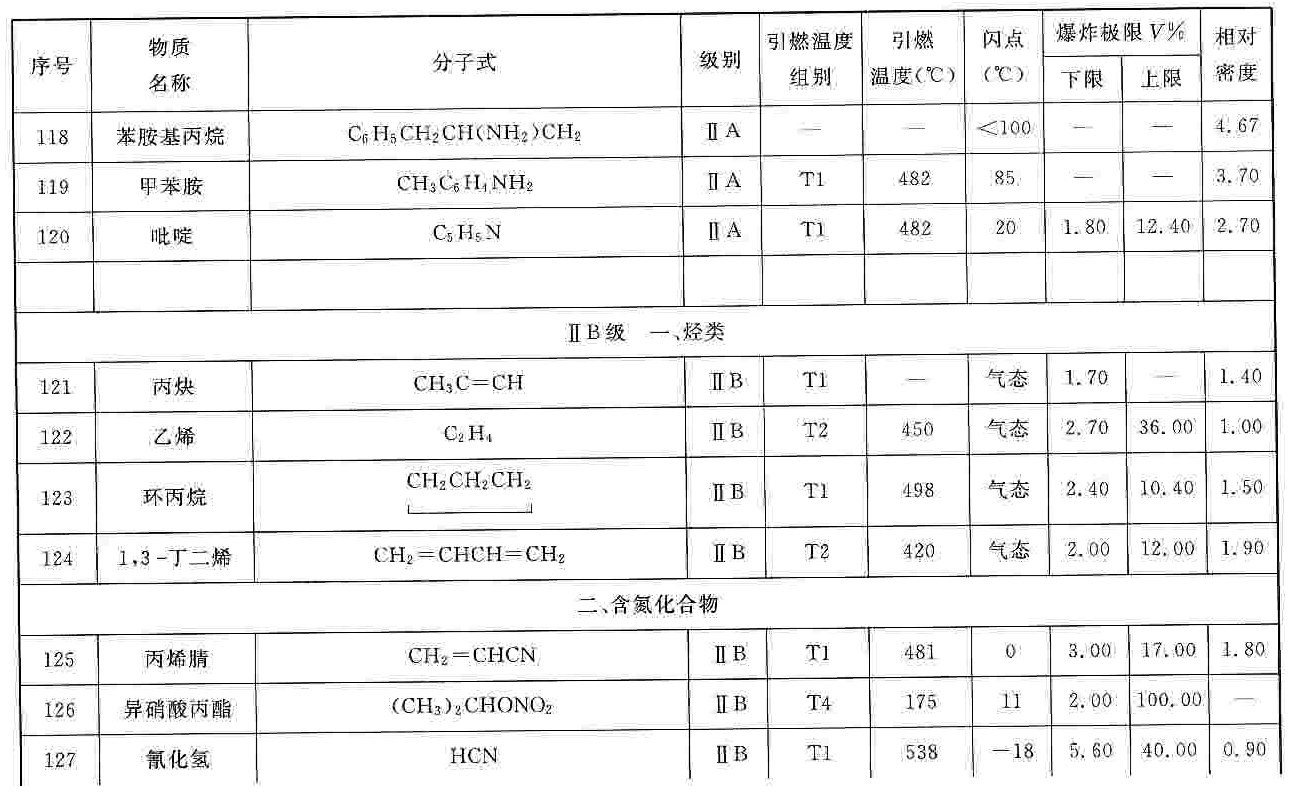 表C 可燃性氣體或蒸氣爆炸性混合物分級(jí)、分組