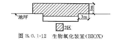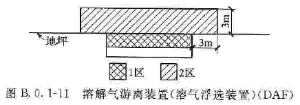 10 對(duì)于開(kāi)頂貯罐或池的生物氧化裝置(圖B.0.1-2),當(dāng)液體表面處為連續(xù)級(jí)釋放源時(shí),開(kāi)頂貯罐或池壁外水平距離半徑為3m,液體表面上方至地坪上高度為3m的范圍內(nèi)宜劃為2區(qū)。