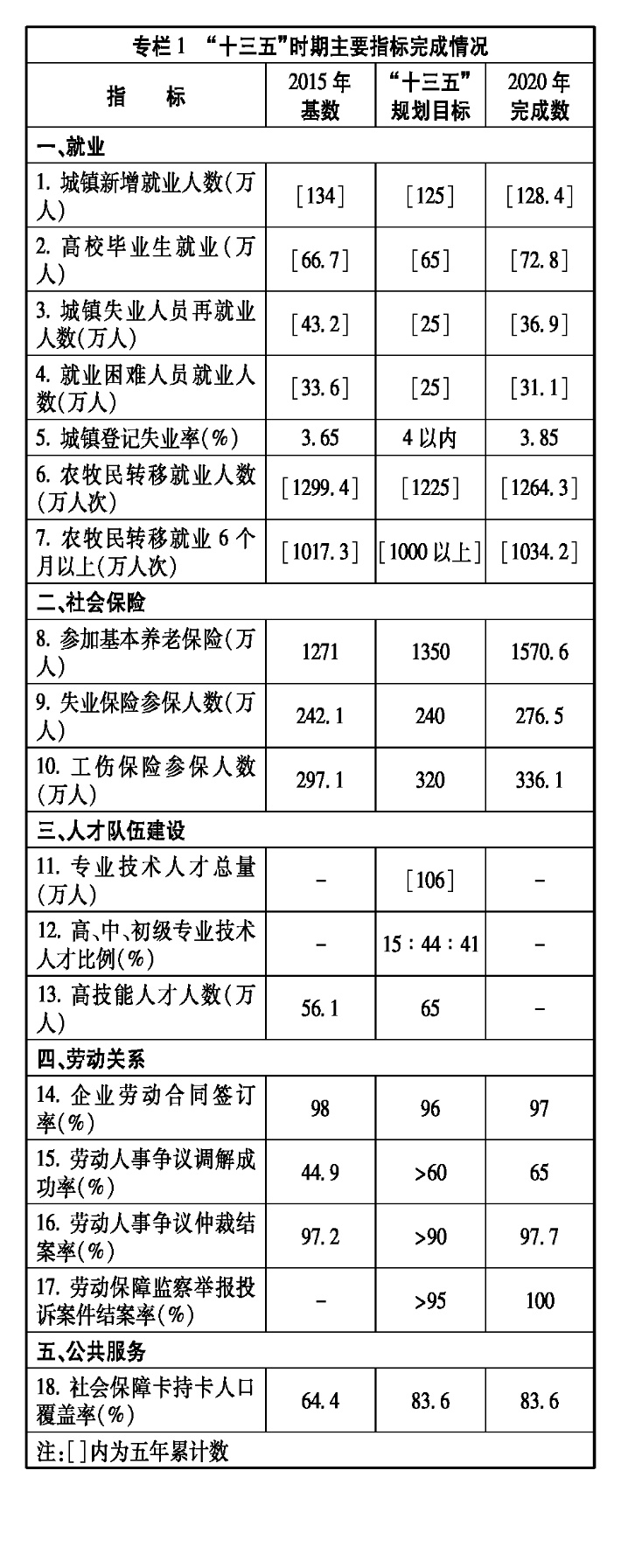 “十三五”時(shí)期是全面建成小康社會(huì)的決勝階段,也是自治區(qū)人力資源和社會(huì)保障事業(yè)發(fā)展不平凡的五年。五年來,全區(qū)人力資源和社會(huì)保障部門認(rèn)真貫徹落實(shí)黨中央、國(guó)務(wù)院和自治區(qū)黨委、政府決策部署,圍繞中心,服務(wù)大局,民生為本,出臺(tái)了一系列重大政策,實(shí)施了一系列重要改革,解決了許多群眾關(guān)切的重大問題,全面完成了“十三五”時(shí)期各項(xiàng)目標(biāo)任務(wù)。就業(yè)局勢(shì)保持總體穩(wěn)定,累計(jì)實(shí)現(xiàn)城鎮(zhèn)新增就業(yè)128.4萬人,城鎮(zhèn)登記失業(yè)率控制在4%以內(nèi)的較低水平。覆蓋城鄉(xiāng)的社會(huì)保障體系基本建成,基本養(yǎng)老保險(xiǎn)、失業(yè)保險(xiǎn)、工傷保險(xiǎn)參保人數(shù)分別達(dá)到1570.6萬人、276.5萬人和336.1萬人,社會(huì)保障卡發(fā)行達(dá)到2136.1萬張,社會(huì)保障安全網(wǎng)進(jìn)一步織密兜牢。人才發(fā)展體制機(jī)制改革持續(xù)深化,人才培養(yǎng)、引進(jìn)、使用和評(píng)價(jià)制度改革全面推進(jìn),人才支撐發(fā)展能力不斷增強(qiáng)。事業(yè)單位公開招聘、聘用合同、崗位設(shè)置管理制度全面實(shí)行,人事管理規(guī)范化、法治化水平明顯提升。工資收入分配制度改革不斷深化,勞動(dòng)關(guān)系保持和諧穩(wěn)定,根治欠薪成效顯著,勞動(dòng)者合法權(quán)益得到有效維護(hù)。人力資源和社會(huì)保障系統(tǒng)扶貧工作取得積極成效,行風(fēng)建設(shè)持續(xù)推進(jìn),公共服務(wù)能力全面提升。“十三五”期間人力資源和社會(huì)保障事業(yè)的持續(xù)健康發(fā)展,為維護(hù)自治區(qū)改革發(fā)展穩(wěn)定大局和全面建成小康社會(huì)作出了積極貢獻(xiàn),也為“十四五”時(shí)期人力資源和社會(huì)保障事業(yè)發(fā)展奠定了堅(jiān)實(shí)基礎(chǔ)。
