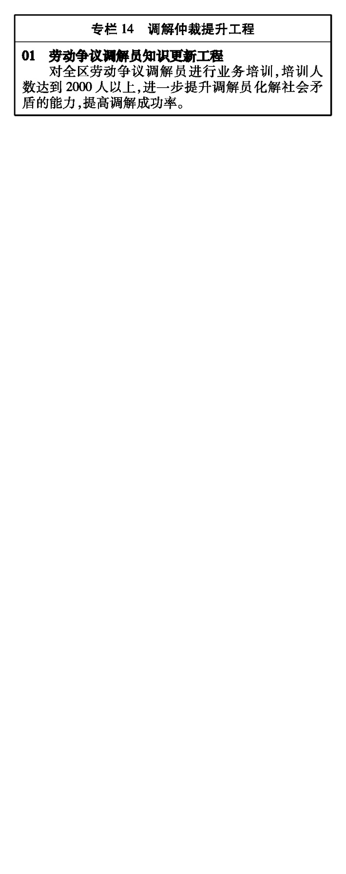 加強(qiáng)勞動(dòng)人事爭(zhēng)議處理效能建設(shè),推動(dòng)調(diào)解仲裁工作規(guī)范化、標(biāo)準(zhǔn)化、專業(yè)化、信息化。加強(qiáng)專業(yè)性勞動(dòng)人事爭(zhēng)議調(diào)解,健全人民調(diào)解、行政調(diào)解、司法調(diào)解聯(lián)動(dòng)體系,推動(dòng)調(diào)解、仲裁與訴訟有效銜接,完善集體勞動(dòng)人事爭(zhēng)議處理機(jī)制。強(qiáng)化鄉(xiāng)鎮(zhèn)(街道)勞動(dòng)人事爭(zhēng)議調(diào)解工作,提高勞動(dòng)人事爭(zhēng)議調(diào)解質(zhì)量和效率。創(chuàng)新仲裁辦案方式,優(yōu)化程序,提升仲裁終結(jié)率。全面開展“互聯(lián)網(wǎng)+調(diào)解仲裁”工作,加強(qiáng)機(jī)構(gòu)隊(duì)伍建設(shè),完善“準(zhǔn)司法”職業(yè)保障機(jī)制。