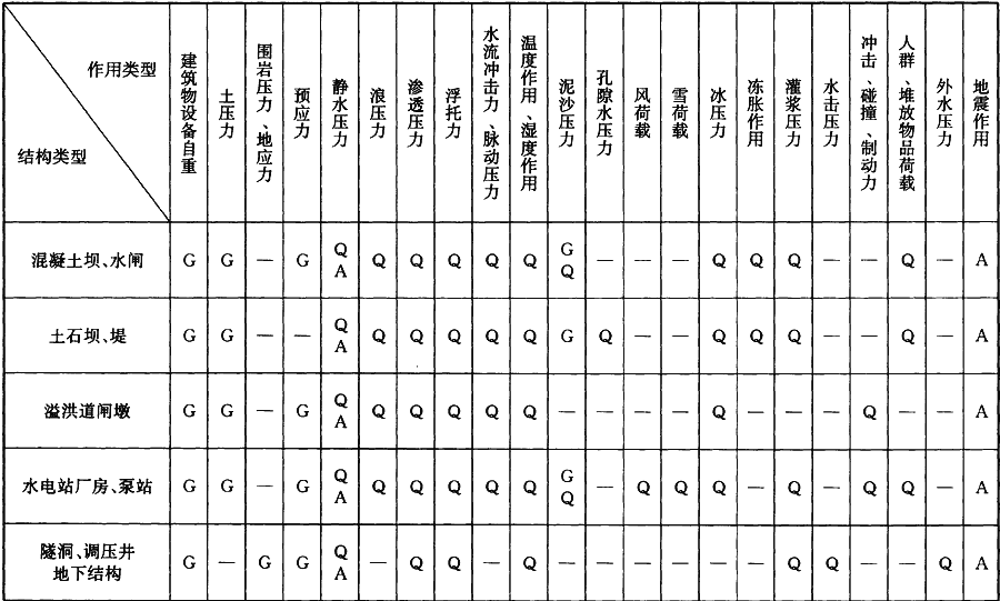 注:G、Q、A分別代表永久作用、可變作用和偶然作用。