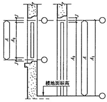 6.4 窗洞口高度標(biāo)志尺寸的下定位線(一般為窗臺(tái)高度定位線)高于各類墻體頂面,或與各類墻體頂面和各類墻板的定位線相重合,或低于窗與墻體同期澆筑的墻體頂面。
