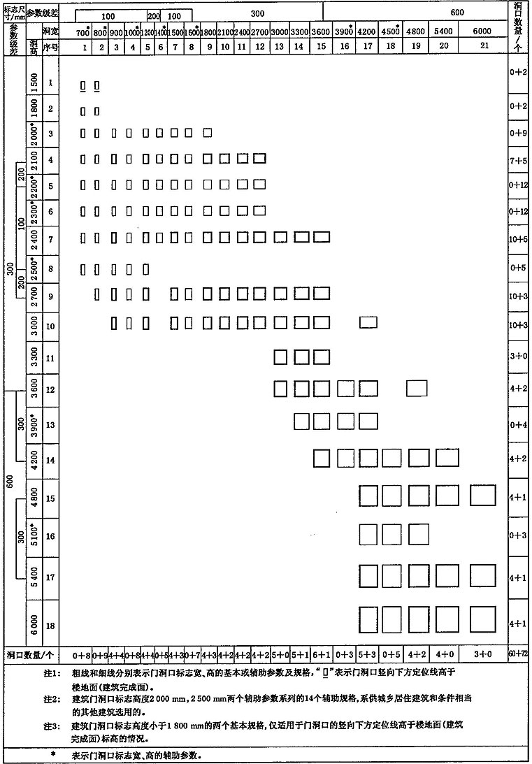 門窗洞口的寬度、高度中至少有一個(gè)為輔助參數(shù)的洞口標(biāo)志尺寸規(guī)格。