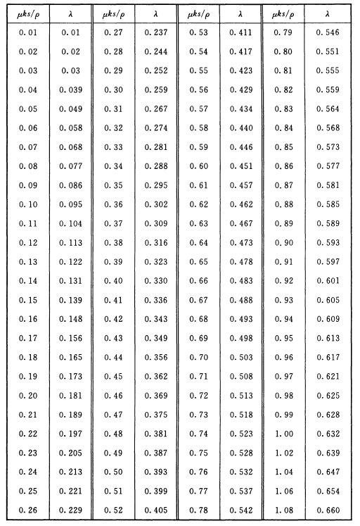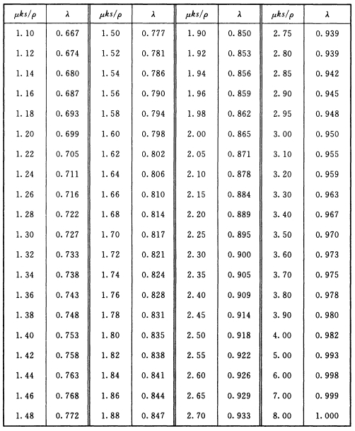 表C-2 λ=(1-e-μks/p)的值