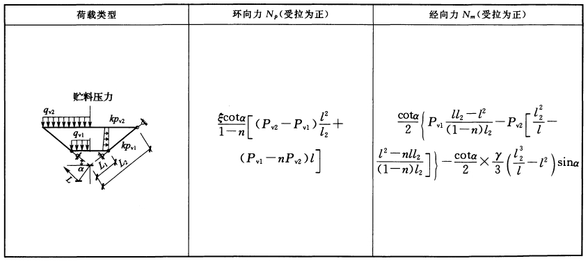 注:1 yc——倉壁材料重力密度(kN/m3);
