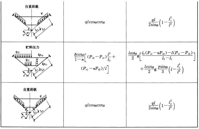 Pv1、Pv2——分別為貯料作用于漏斗底部及頂部單位面積上的豎向壓力(kPa);