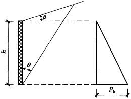 B.0.1 當(dāng)倉壁頂面以上的貯料為錐體、破裂面通過倉的中線(圖B.0.1)時(shí),貯料作用于淺圓倉倉壁上的側(cè)壓力可按下列公式計(jì)算: