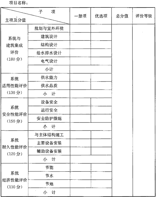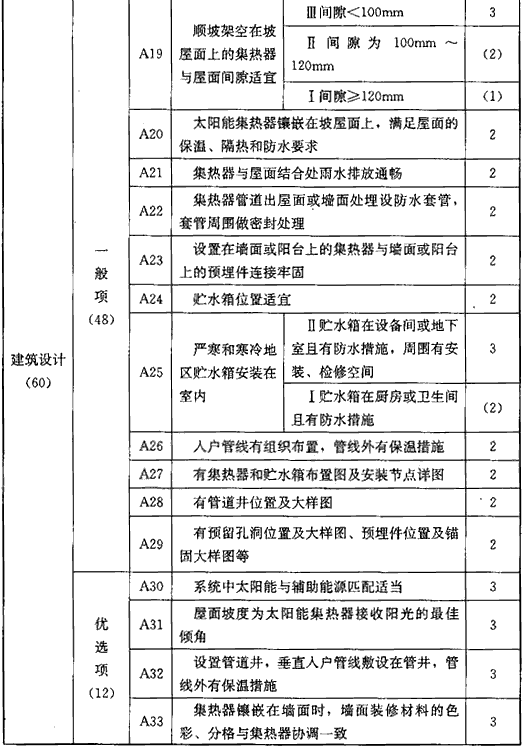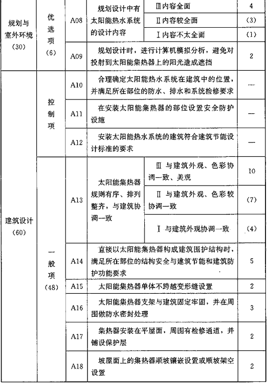 表A 系統(tǒng)與建筑集成評價指標(biāo)(180分)