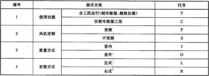 HVF-CFOR-10:表示僅在制冷除濕工況運(yùn)行、風(fēng)機(jī)變頻、室外放置、右式安裝方式的機(jī)組,名義新風(fēng)量為10000m3/h。