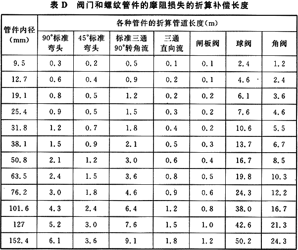 附錄D 閥門和螺紋管件的摩阻損失的折算補償長度