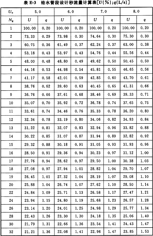 附錄C 給水管段衛(wèi)生器具給水當量同時出流概率計算式ac系數(shù)取值表