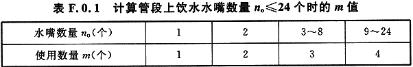 F.0.2 當計算管段上飲水水嘴數(shù)量no>24個時,同時使用數(shù)量m按表F.0.2取值。