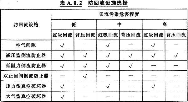A.0.2 防回流設(shè)施應按表A.0.2選擇。