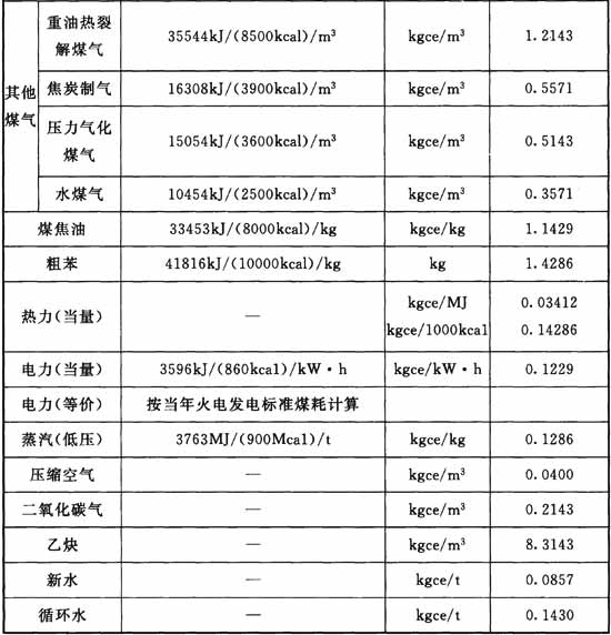 3 外購的二次能源,當無條件實測時,應(yīng)按國家現(xiàn)行有關(guān)折標煤系數(shù)計算。