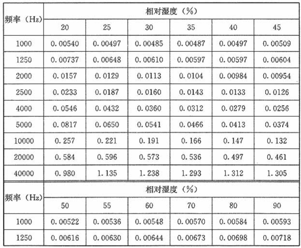 表A.0.1-1 標(biāo)準(zhǔn)大氣壓(101.325kPa)時空氣吸收系數(shù)4m值,室溫20°C