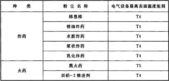 附錄C 火藥、炸藥危險場所電氣設備最高表面溫度的分組劃分