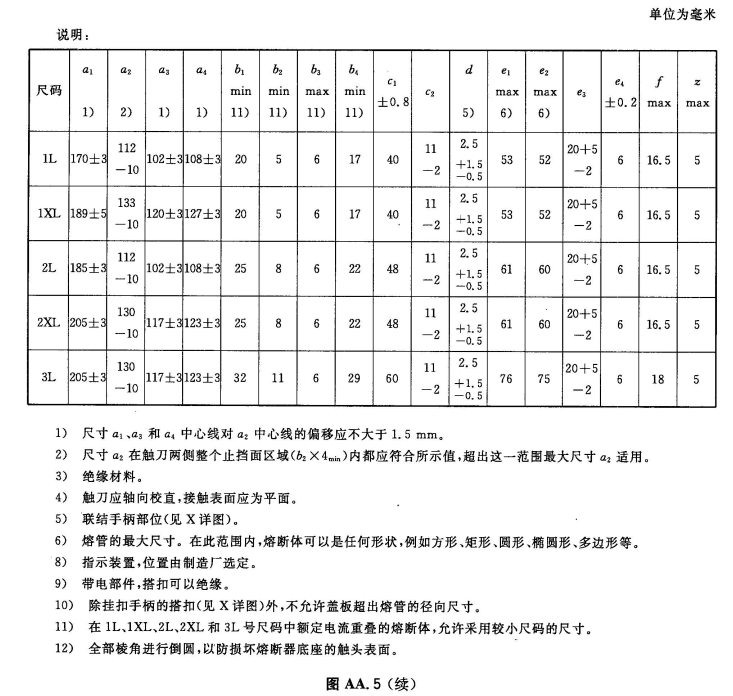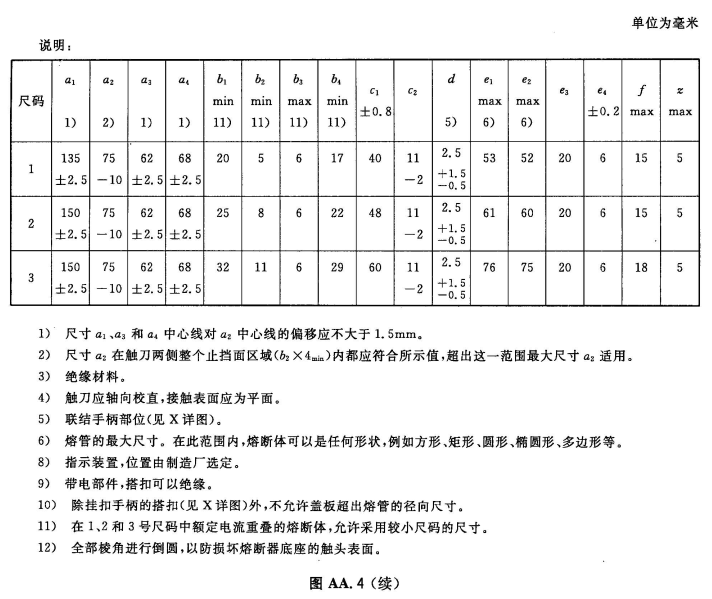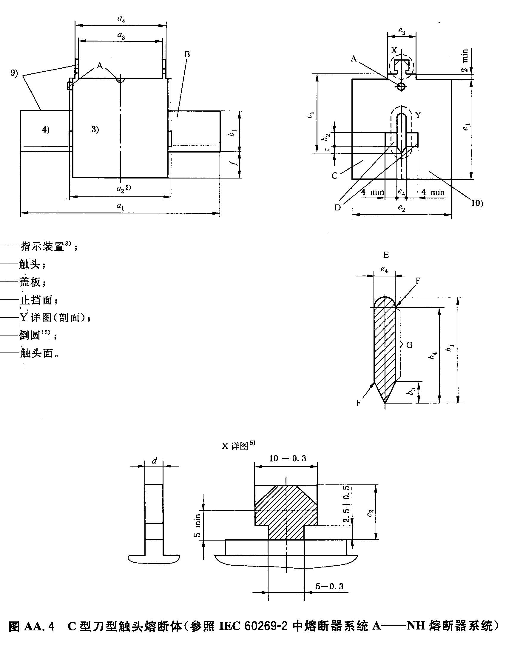 AA.4 C型刀型觸頭熔斷體(參照IEC 60269-2中熔斷器系統(tǒng)A――NH熔斷器系統(tǒng))
