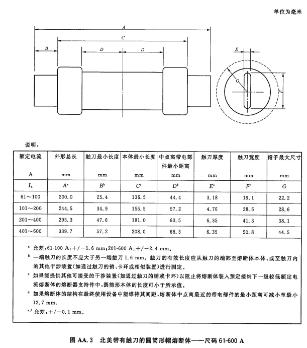 ——B型帶有觸刀的圓筒形帽熔斷體系統(tǒng)――北美(圖AA.3);