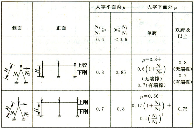 表C.0.1 人字柱平面內(nèi)、外壓桿的計(jì)算長度系數(shù)