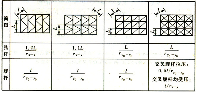 B.0.2 格構(gòu)式鋼結(jié)構(gòu)構(gòu)件的計(jì)算長度及長細(xì)比,應(yīng)按表B. 0.2采用。