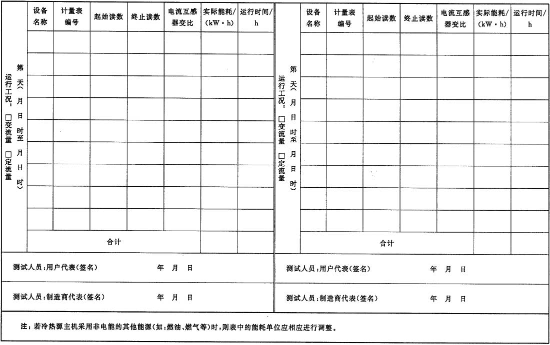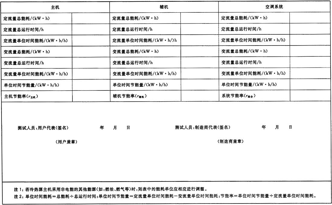 a) 測試說明。在進行節(jié)能率測試前,用戶和制造商雙方人員應(yīng)對節(jié)能測試過程(如測試時間安排、投入運行的空調(diào)設(shè)備等)及相關(guān)事宜進行協(xié)商,并以書面形式記錄歸檔保存。