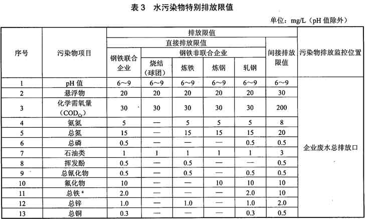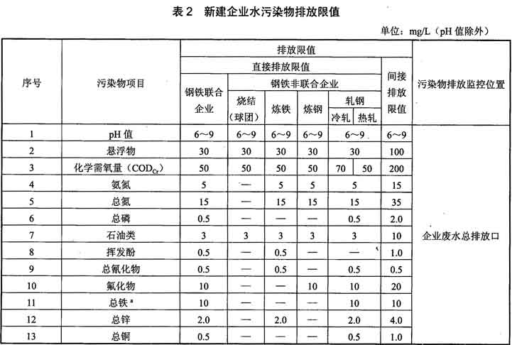 本標(biāo)準(zhǔn)規(guī)定了鋼鐵生產(chǎn)企業(yè)或生產(chǎn)設(shè)施水污染物排放限值、監(jiān)測和監(jiān)控要求,以及標(biāo)準(zhǔn)的實施與監(jiān)督等相關(guān)規(guī)定。