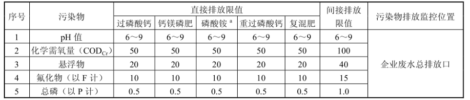 本標(biāo)準(zhǔn)規(guī)定了磷肥工業(yè)企業(yè)或生產(chǎn)設(shè)施水污染物排放限值。