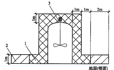 B.0.10 異丙醇液槽,在通風(fēng)類型為人工、等級為中級、有效性為良好的條件下,距異丙醇液槽外沿2m范圍內(nèi)、工地面到液槽上方排風(fēng)設(shè)施之間的區(qū)域,應(yīng)劃為爆炸危險區(qū)域1區(qū)(圖B.0.10)