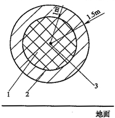 2 半徑3m,地坪上的高度1m,且在1區(qū)以外的區(qū)域,應(yīng)劃為2區(qū)。