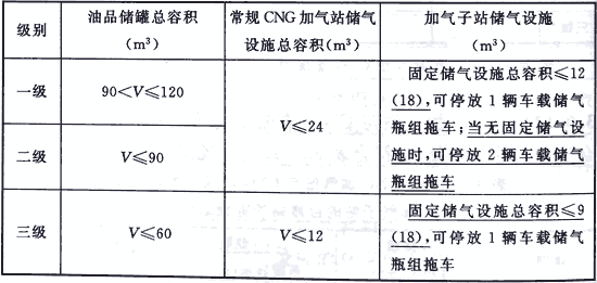 3.0.14 加油與CNG加氣合建站的等級劃分,應符合表3.0.14的規(guī)定。