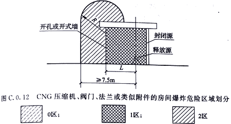 C.0.12 CNG壓縮機、閥門、法蘭或類似附件的房間爆炸危險區(qū)域劃分(圖C.0.12),應符合下列規(guī)定: