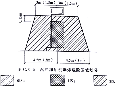 C.0.5 汽油加油機爆炸危險區(qū)域劃分(圖C.0.5),應符合下列規(guī)定: