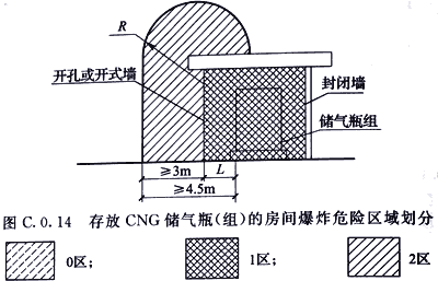 C.0.14 存放CNG儲氣瓶(組)的房間爆炸危險區(qū)域劃分(圖C.0.14),應符合下列規(guī)定: