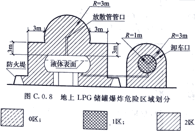 C.0.8 地上LPG儲罐爆炸危險區(qū)域劃分(圖C.0.8),應符合下列規(guī)定: