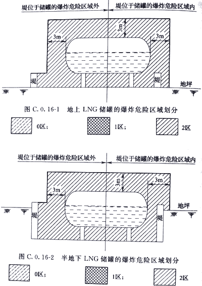 C.0.16 LNG儲罐的爆炸危險區(qū)域劃分(圖C.0.16-1~圖C.0.16-3),應符合下列規(guī)定: