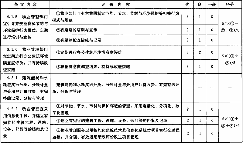 表B.0.6 “運(yùn)營(yíng)管理”部分第三級(jí)評(píng)價(jià)指標(biāo)分值設(shè)置
